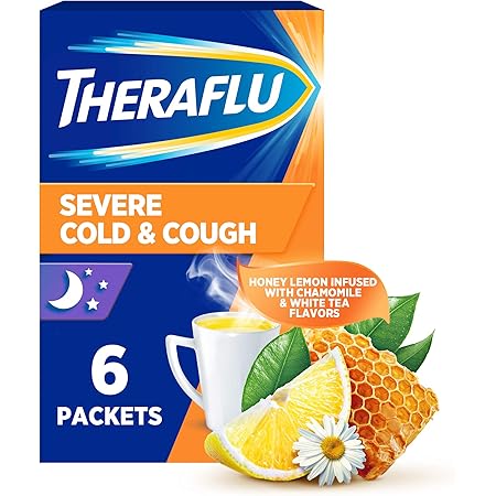 Amazon Com Theraflu Multi Symptom Powder For Nighttime Severe Cold Honey Lemon Infused With Chamomile And White Tea 6 Packets Health Household